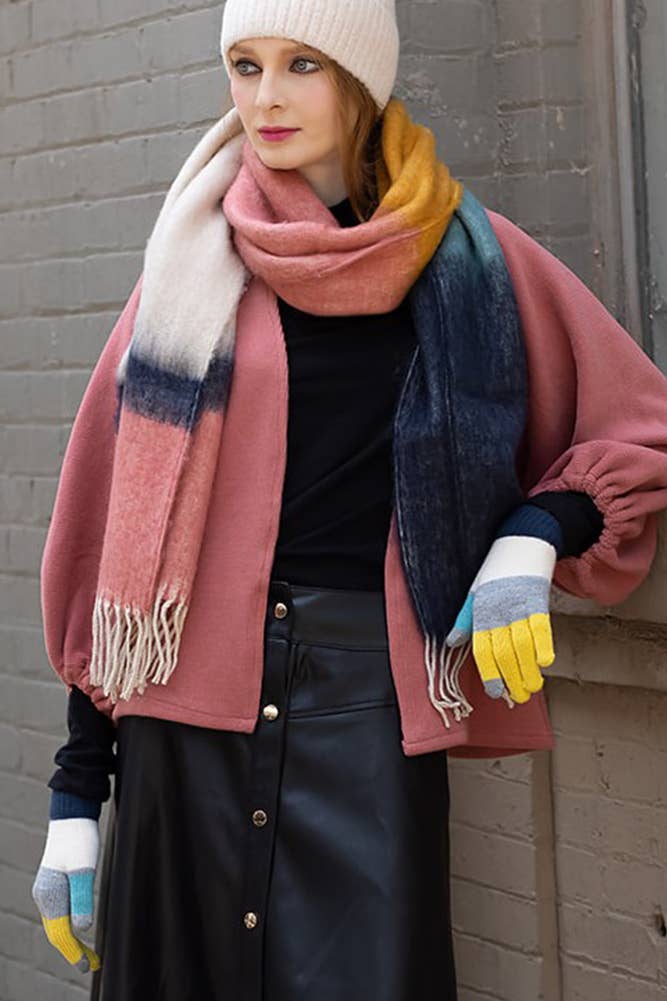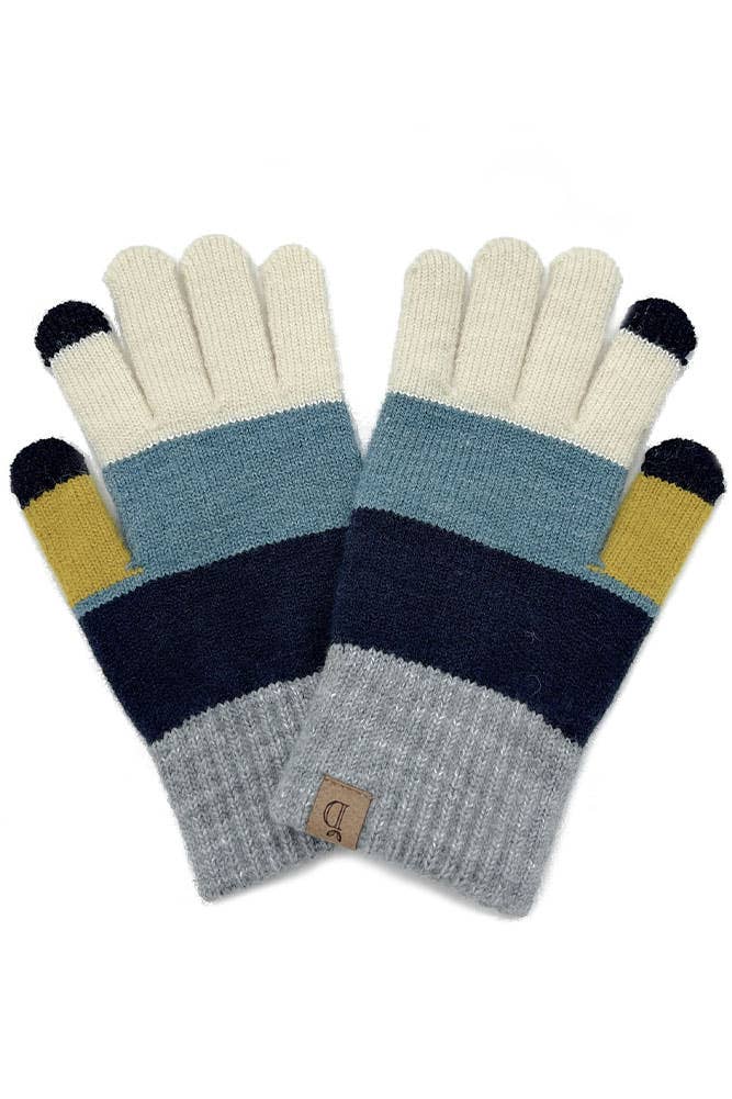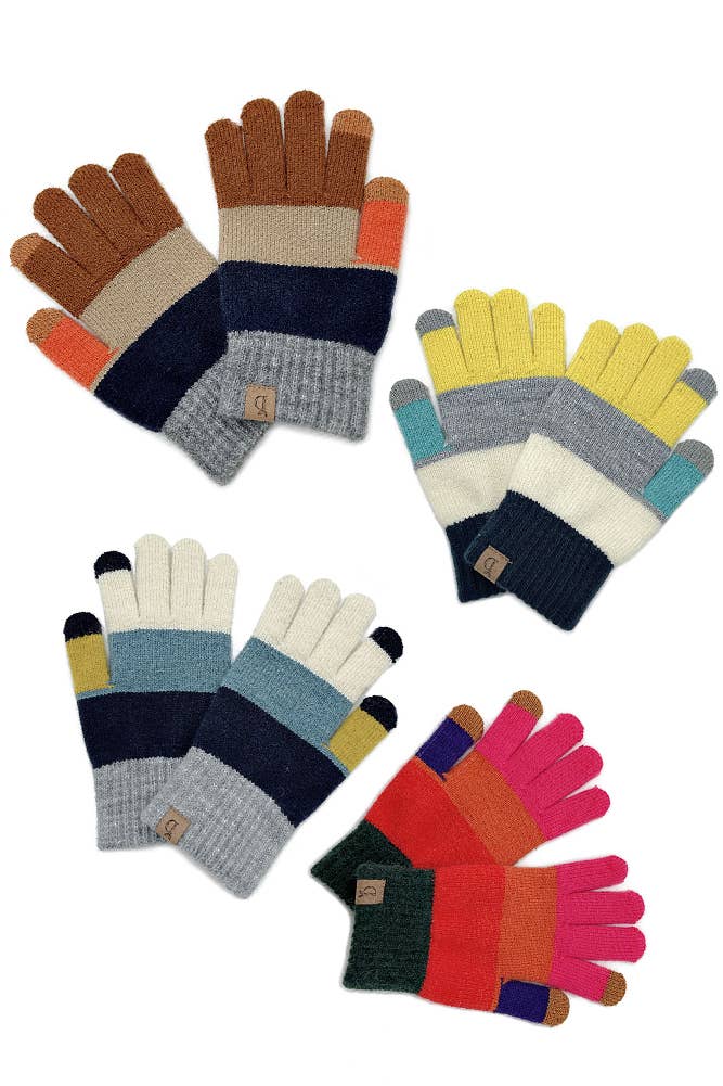 red gloves Color Block Knit Touch Gloves: Fuchsia red striped