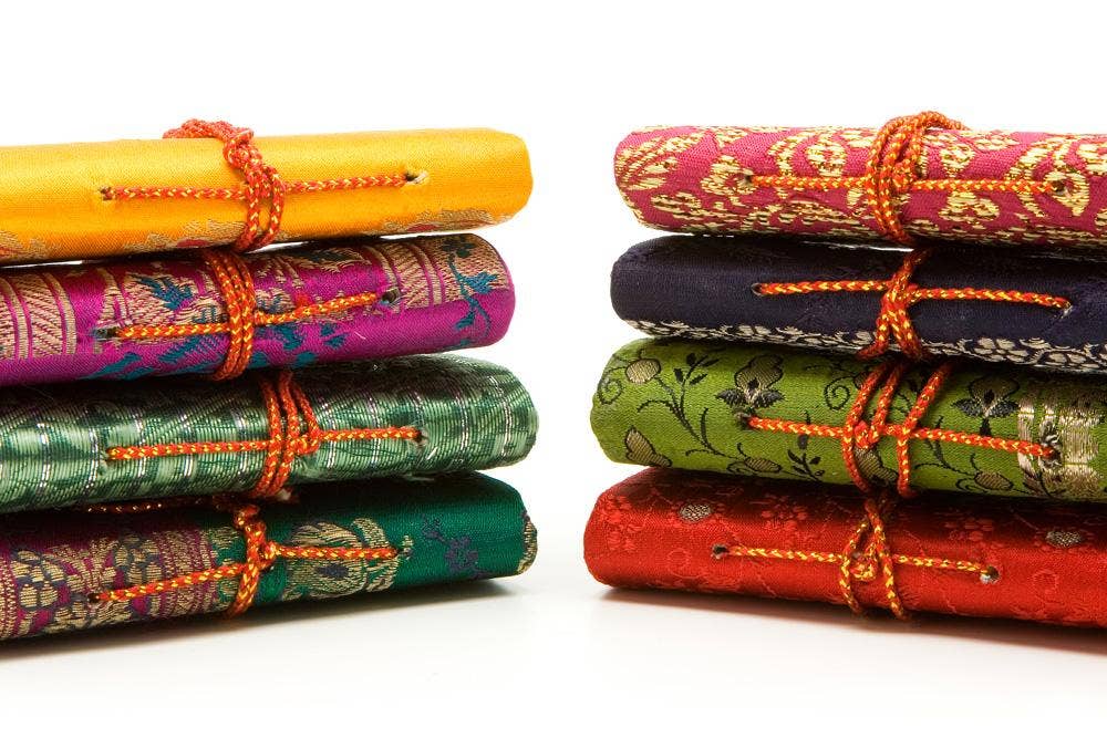 Small notebook bound with zari fabric. Blank pages inside. Assorted colors. 4" x 2.75" x 0.5"