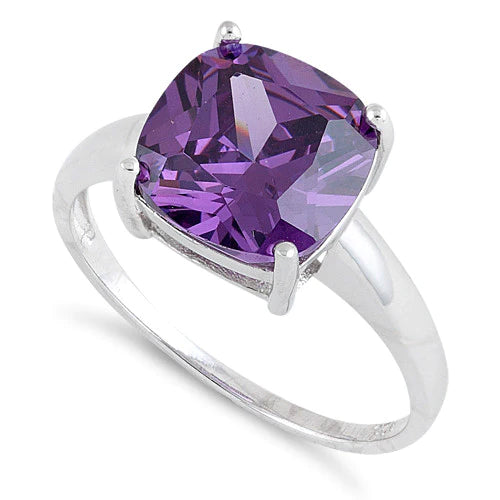Sterling Silver Cushion Cut Amethyst CZ Ring